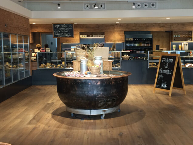 Sind Sie noch auf der Suche nach einem Blickfang für Ihren Verkaufsladen? Wir stellen auch einzigartige Kühlvitrinen, verbaut in einem alten Käse-Kupfer-Kessi, her: Download PDF